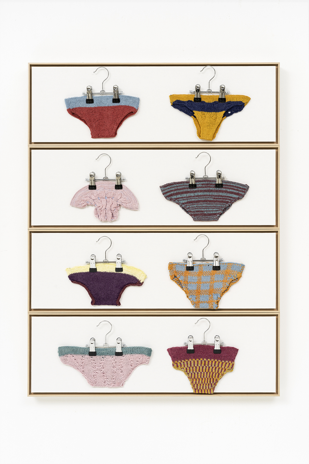 Material: Hanger and various yarn knitted on single-bed brother knitting machine